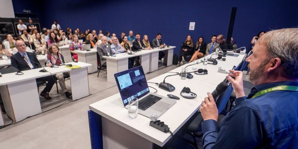 Christopher Wood, diretor do Centro de Estudos de Populações de Aves do Laboratório de Ornitologia da Universidade de Cornell, participa do lançamento do Atlas de Rotas Migratórias das Américas – Foto: Rafa Neddermeyer/Agência Brasil