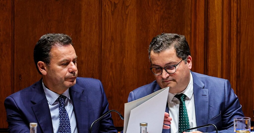 Luís Montenegro, primeiro-ministro, e Joaquim Miranda Sarmento, ministro das Finanças. Parlamento, 28 de outubro de 2025.Foto: Leonardo Negrão