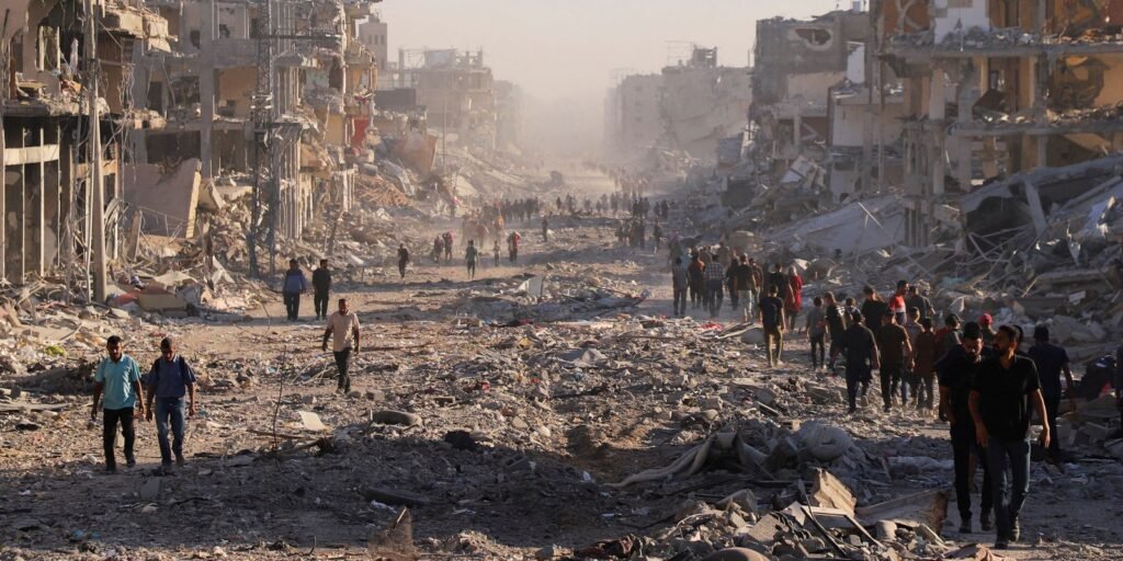 A primeira fase da iniciativa do presidente dos EUA, Donald Trump, para pôr fim à guerra de dois anos em Gaza exige que as forças israelenses se retirem de algumas das principais áreas urbanas de Gaza, embora ainda controlem cerca de metade do território do enclave.
